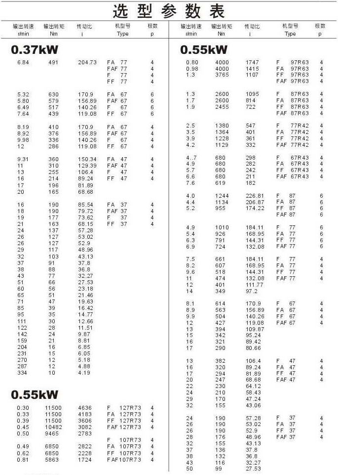 選型參數(shù)表0.37kW(續(xù)),0.55kW