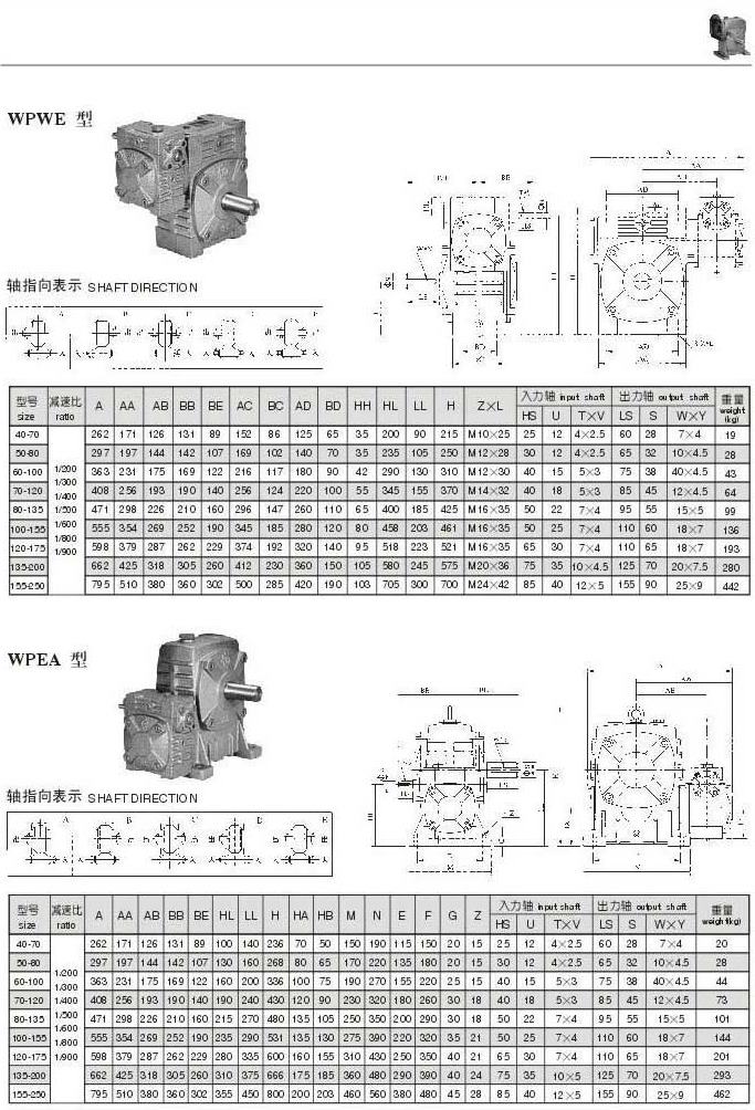 WPWE,WPEA型型號參數(shù)圖表