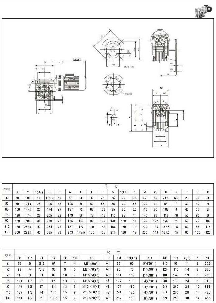 蝸輪減速機與擺線減速機組合型技術(shù)參數(shù)表(輸出扭矩N.M)三