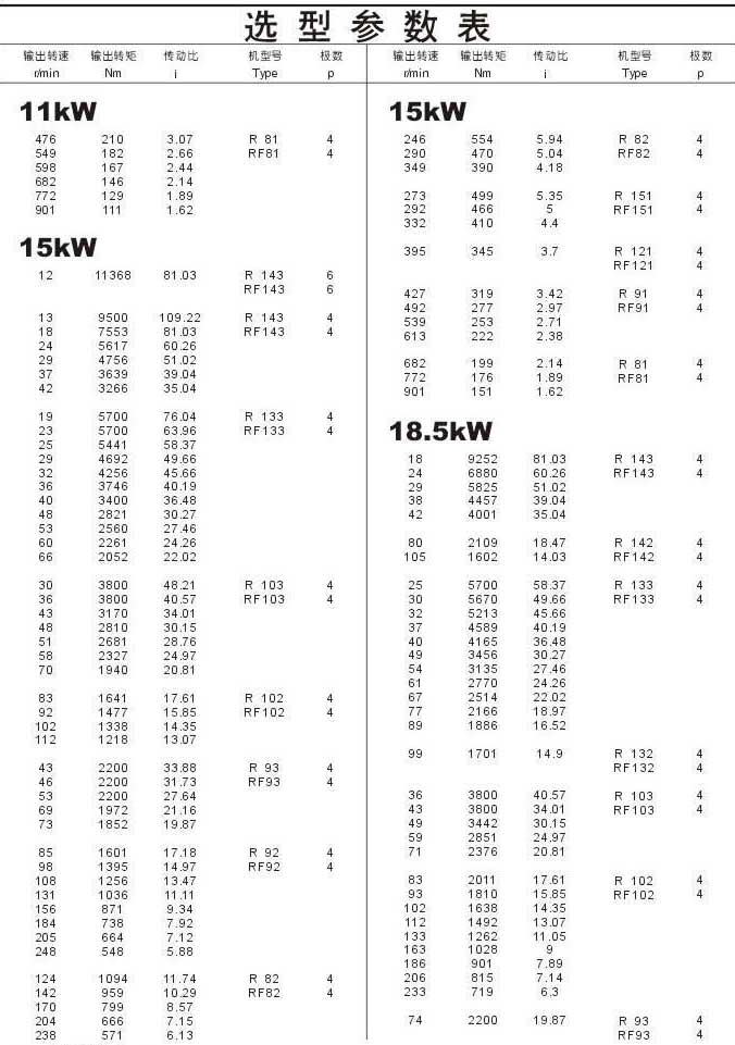 選型參數(shù)表11kW(續(xù)),,15kW,18.5kW